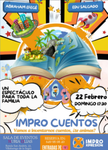 ImproXpresion Impro Familiar instagram Conecta mail Contacta file Dossier youtube Youtube SHOWS TEATRO IMPROVISACION - TALLERES DE TEATRO - Conecta con tu lado creativo - AGENDA 2026 IMPRO CUENTOSSALA NURIA OLIAS22 DE FEBRERO- 17:3060 MINUTOSFAMILIAR RESERVAS EN 649 98 08 40 IMPRO CUENTOSCASA CULTURA CARRANQUE14 DE MARZO- 12:0060 MINUTOSFAMILIAR ENTRADAS IMPRO REMEMBER SHOWCASA CULTURA CARRANQUE14 DE MARZO- 20:0090 MINUTOS+18 PRÓXIMAMENTE SHOWS Shows de teatro de improvisación - Talleres de teatro en tu espacio ¡Valóranos en Google! Nos ayudarías mucho si nos escribes una reseña en Google.¡Sólo tardarás 5 segundos! Escribir reseña Instagram Envelope